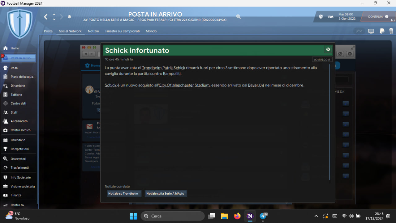 Si potrò giocare le partite a partire dal giorno lunedì 16/12 dicembre fino e non oltre le ore 23:59 di domenica 22/12/2024.