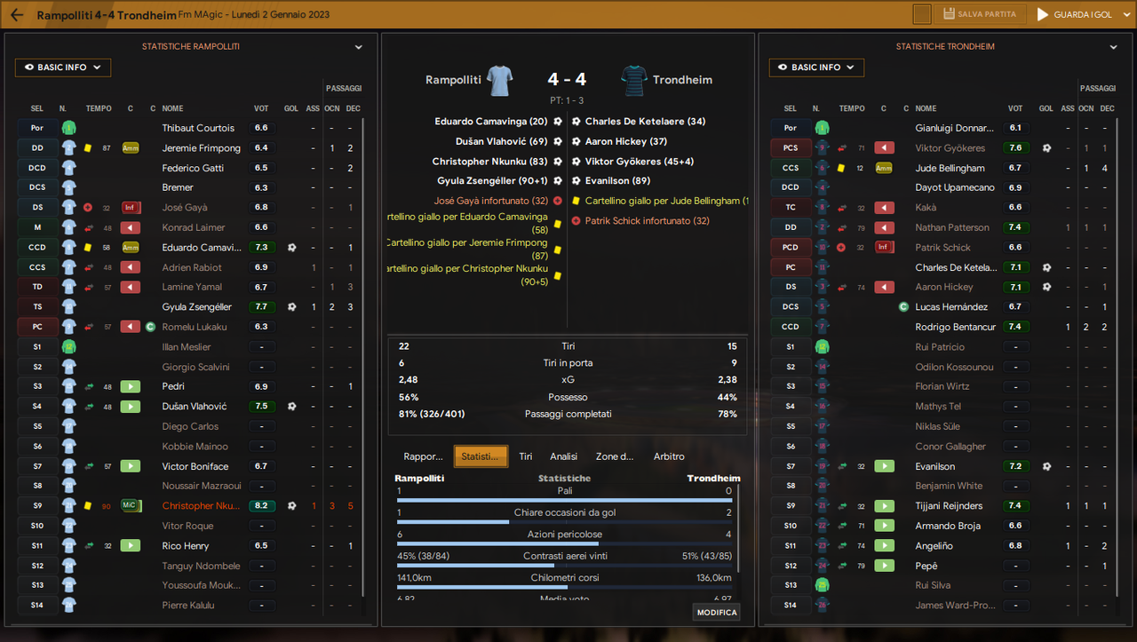 Per una questione di chiarezza e trasparenza, vi devo delle spiegazioni: il mister di Castro è stato disconnesso dal server al minuto 81 della partita, per cui tutto quel che è accaduto dopo, non è da prendere in considerazione.